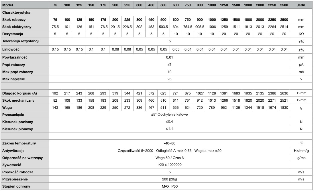precyzyjne potencjometry liniowe stosowane do kontroli położenia i przemieszczeń w maszynach przemysłowych. Charakteryzują się wysoką powtarzalnością pomiaru, niezawodną pracą oraz odpornością na intensywną eksploatację w środowisku przemysłowym.